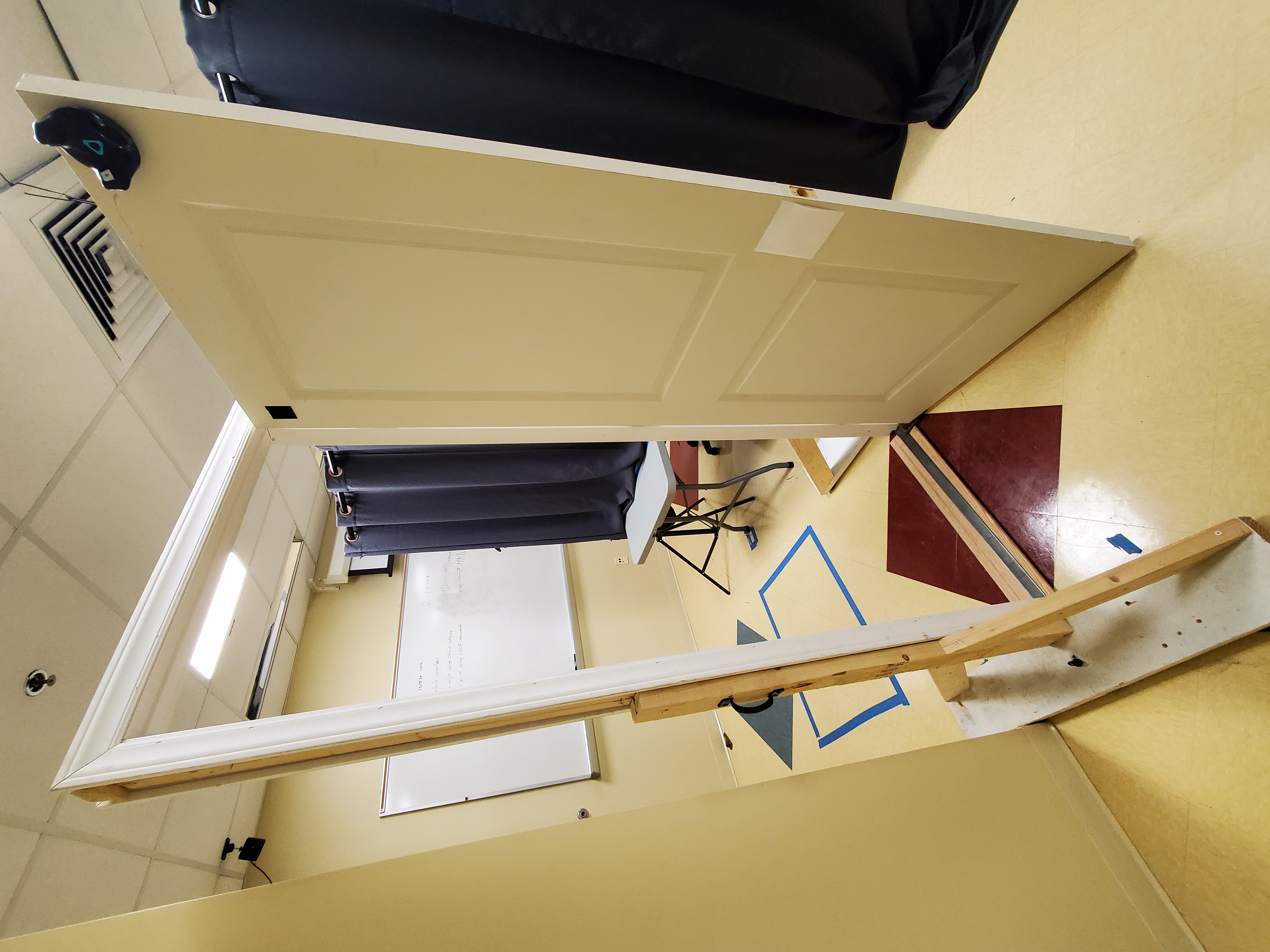 Research has found a time compression effect related to virtual reality. Just like how we feel like time passes quicker when we are on the computer, time feels quicker in VR. Our motivation is to reduce this effect to achieve VR experiences that are closer to real life. We are researching to what degree passive haptics affect our perception of time. We created an immersive VR experience where the virtual environment simulates the actual room around the user, moving objects such as doors, some devices, and users’ hands are tracked and displayed through the VR headset as well.